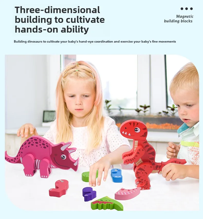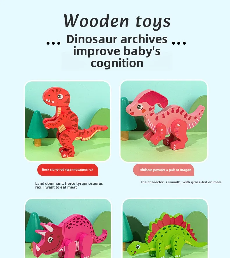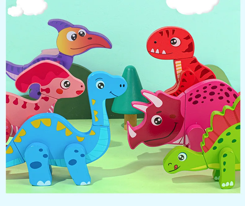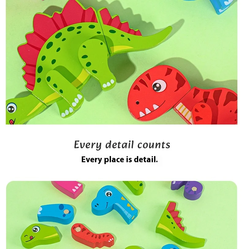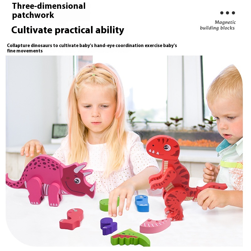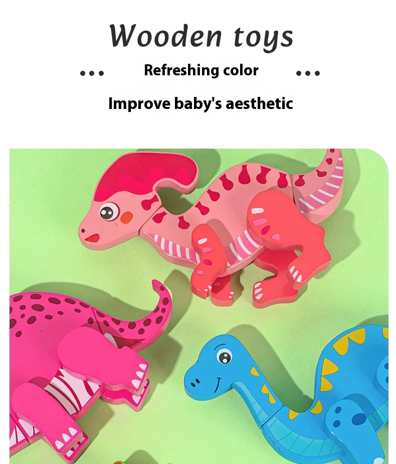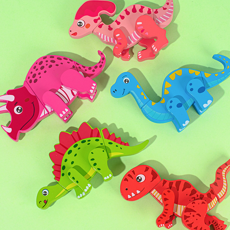 Wooden Children’s Early Education Three-dimensional Animal Puzzle Baby Boys and Girls Puzzle Dinosaur Building Block Toys