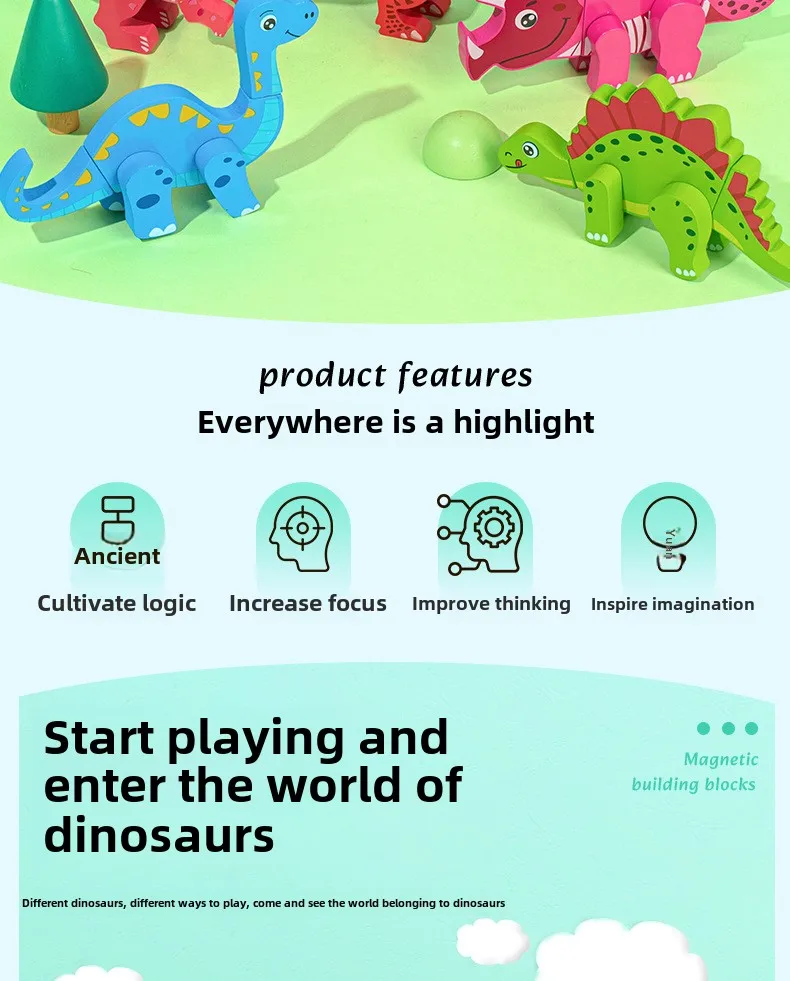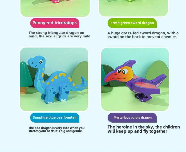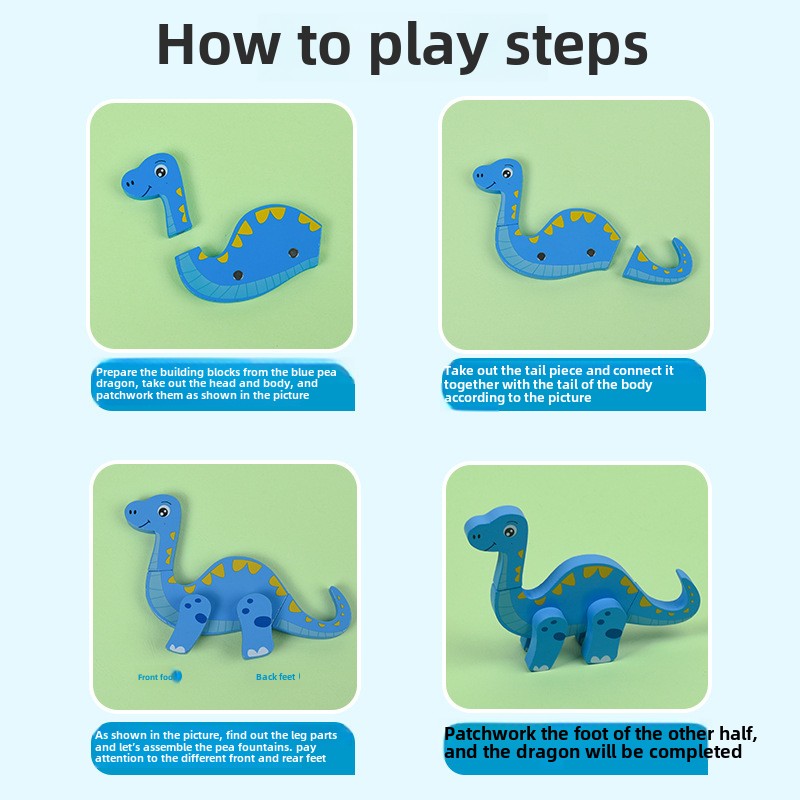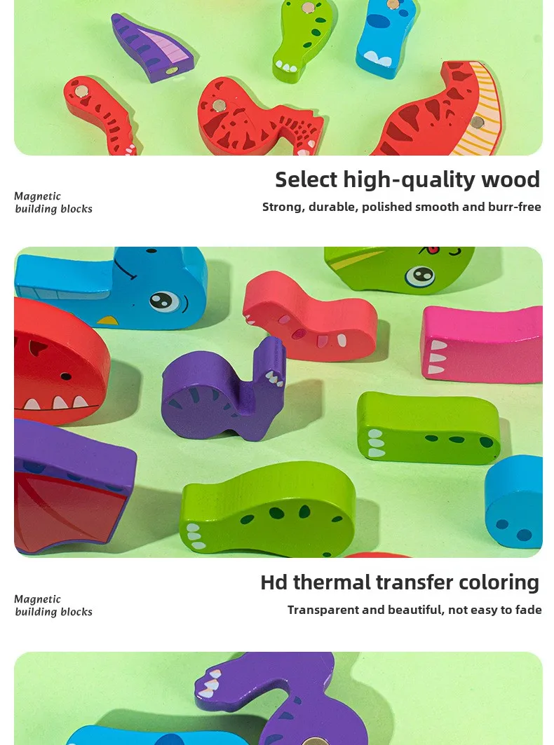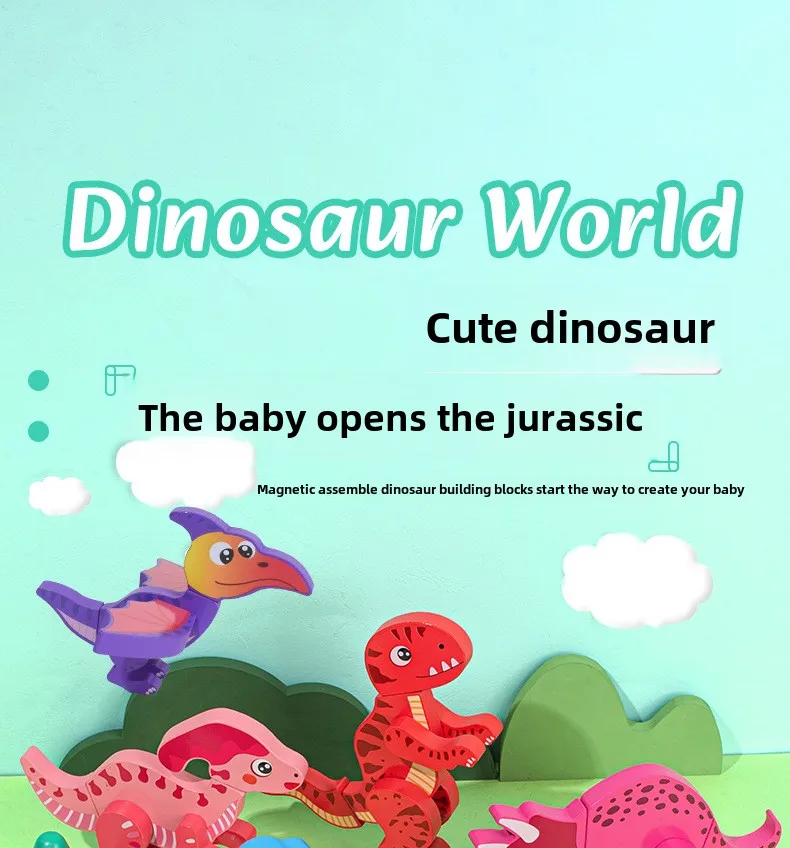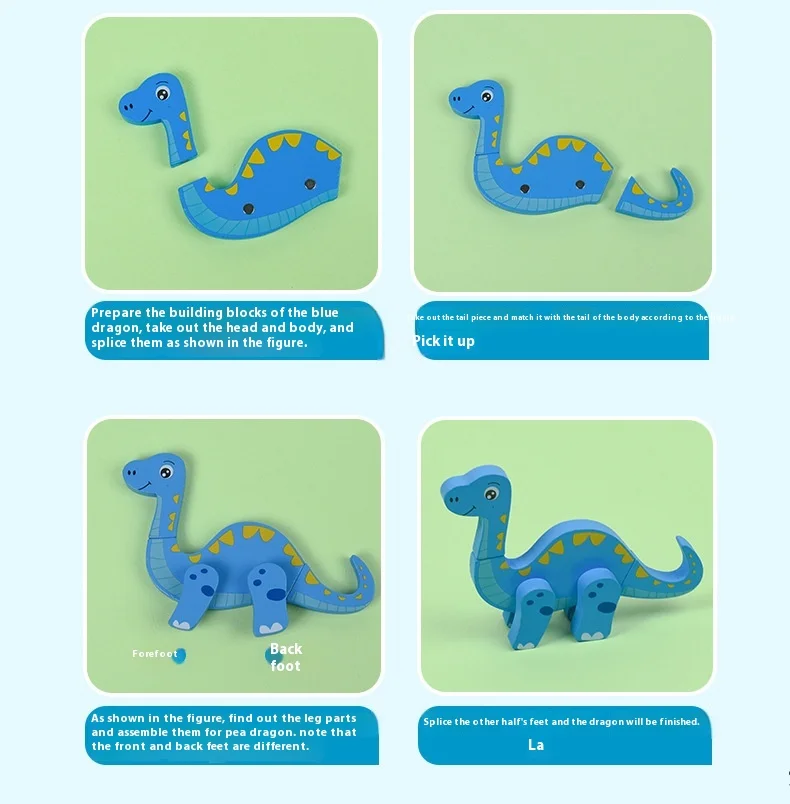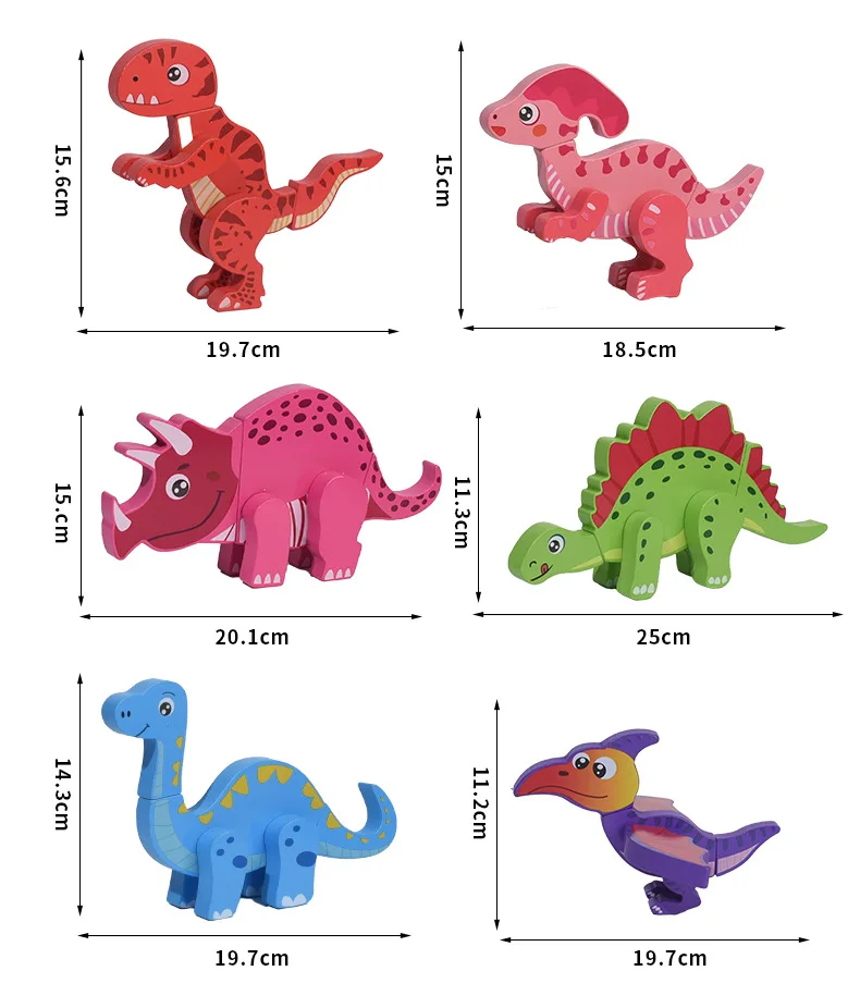 Wooden Children’s Early Education Three-dimensional Animal Puzzle Baby Boys and Girls Puzzle Dinosaur Building Block Toys