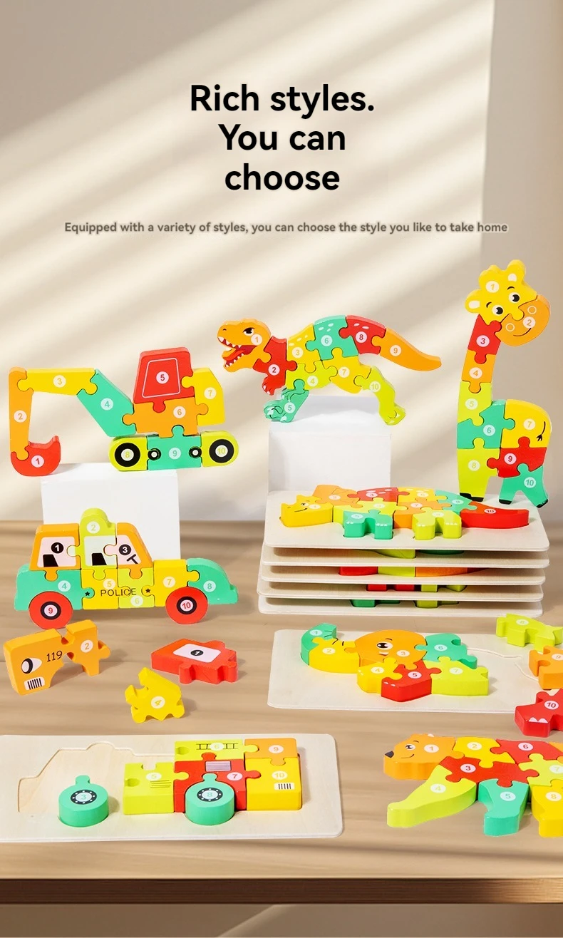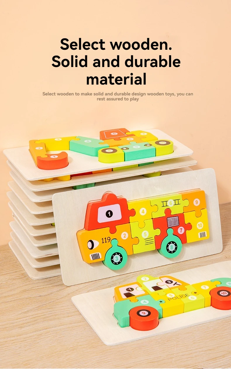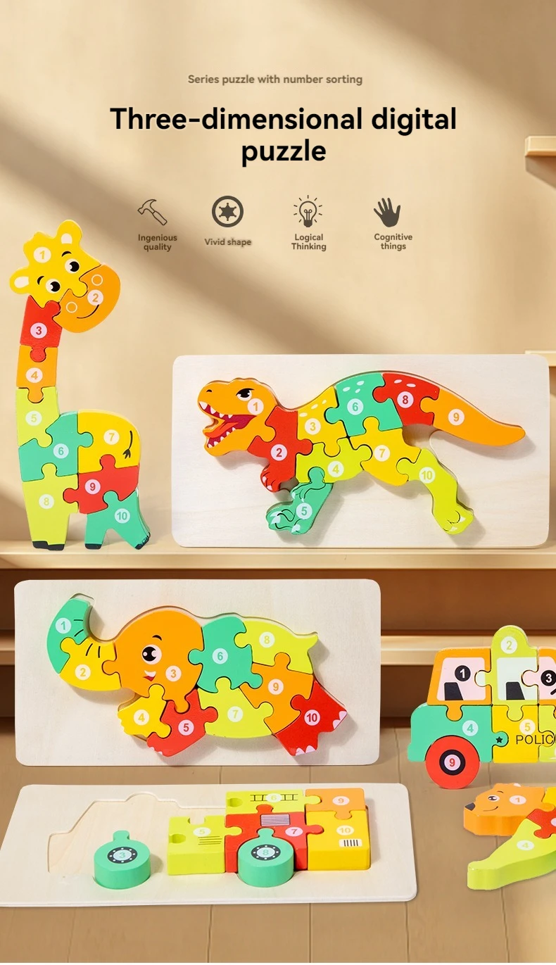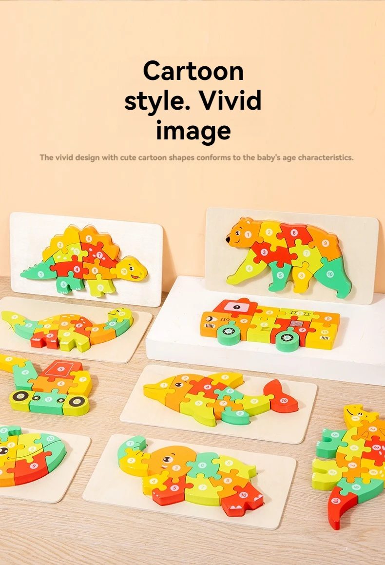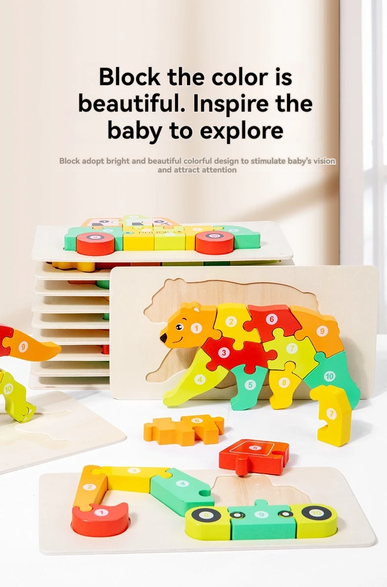 Wooden Children’s Educational Toys Early Education Cognitive Animal Traffic Shape Matching 3D Puzzle