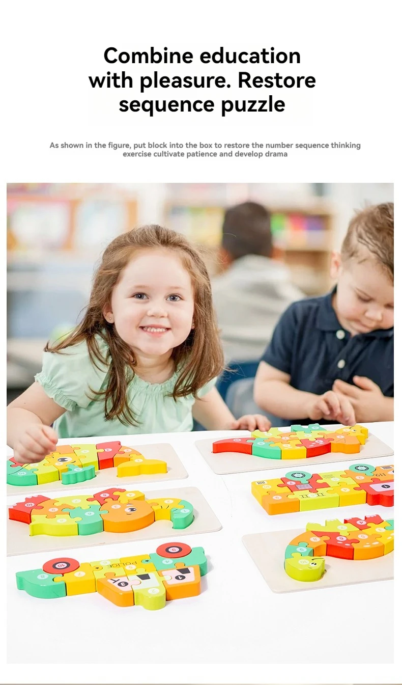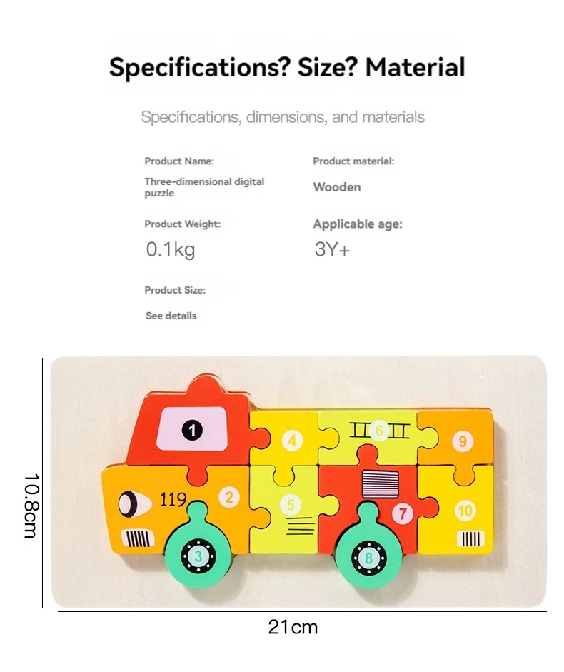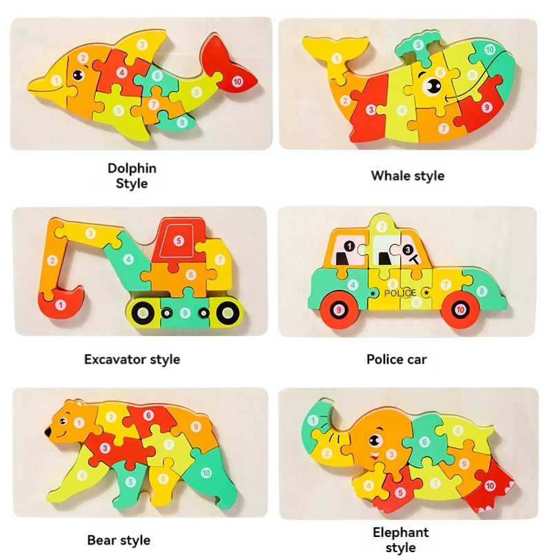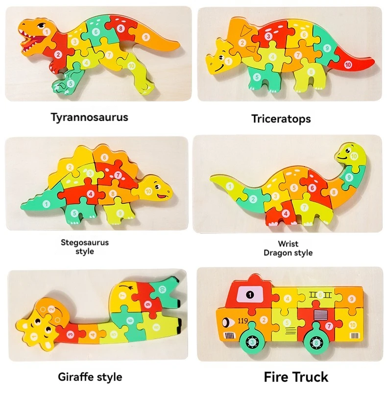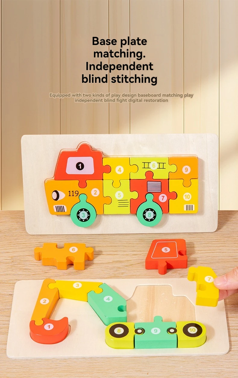 Wooden Children’s Educational Toys Early Education Cognitive Animal Traffic Shape Matching 3D Puzzle