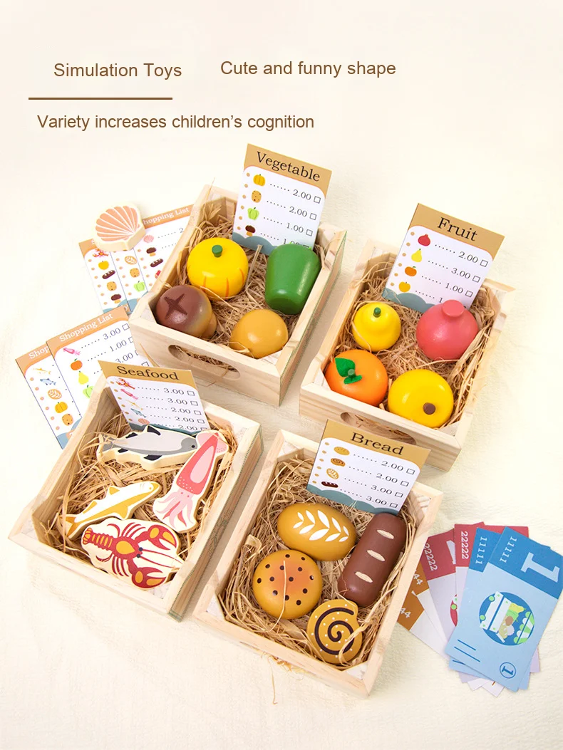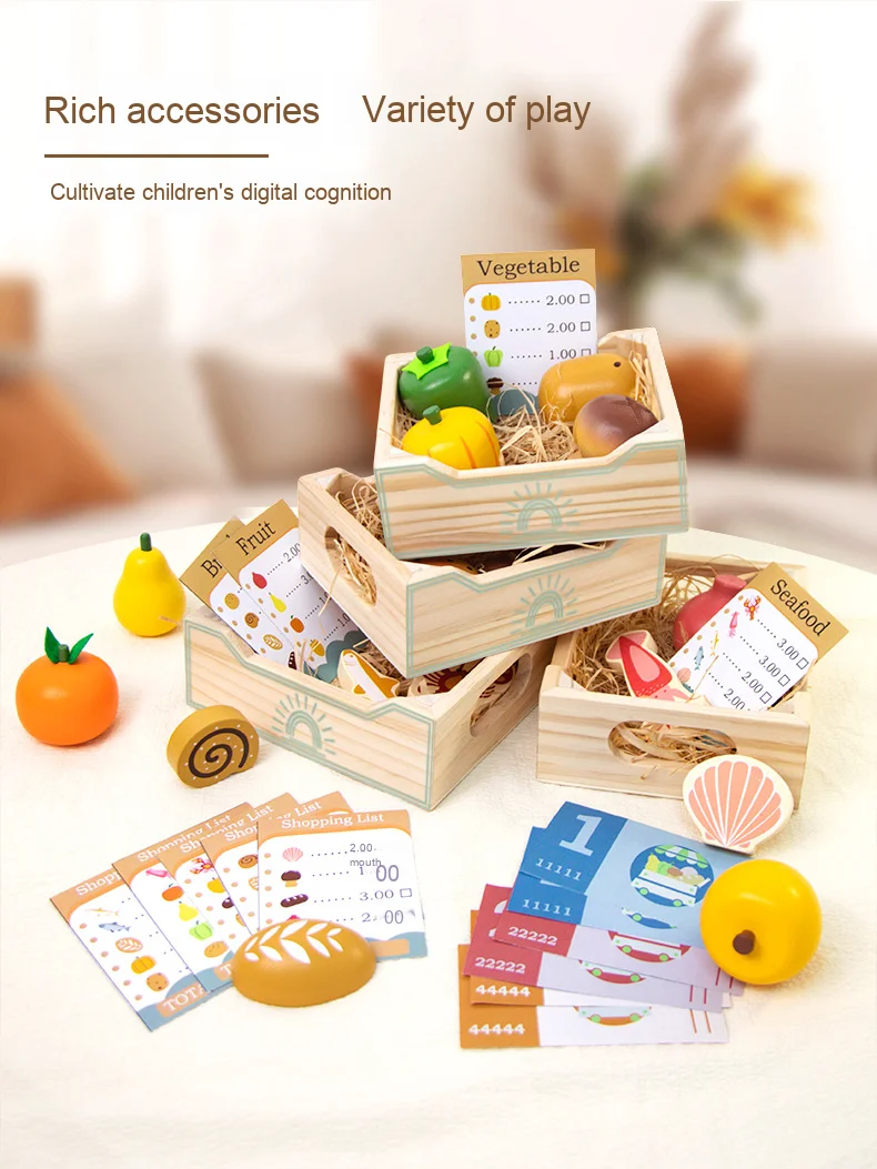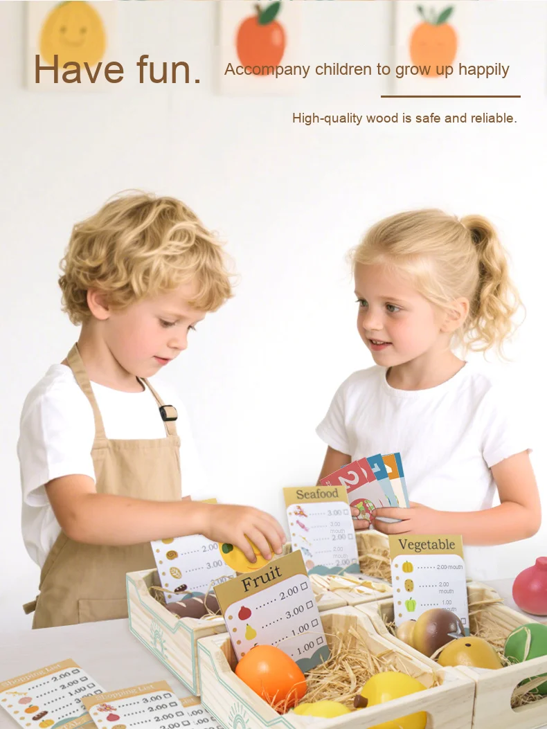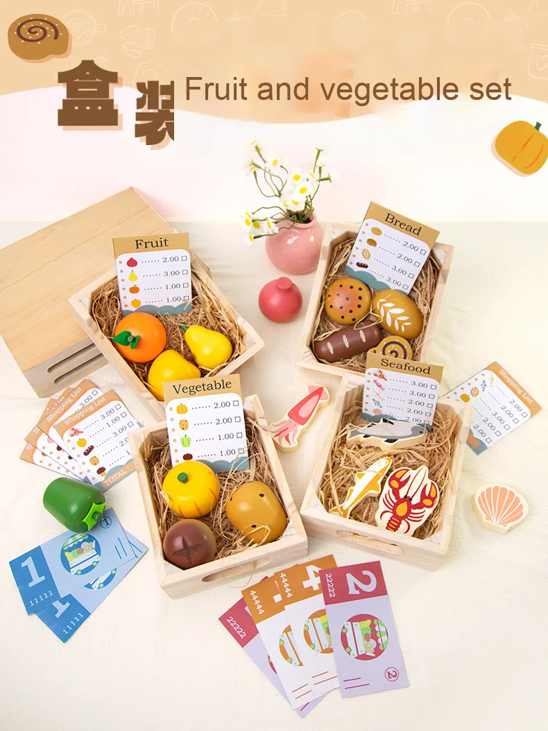 Wooden Children’s Play House Simulation Set Early Education Puzzle with Fruit & Vegetable Parent-Kids Interactive Fun Toys