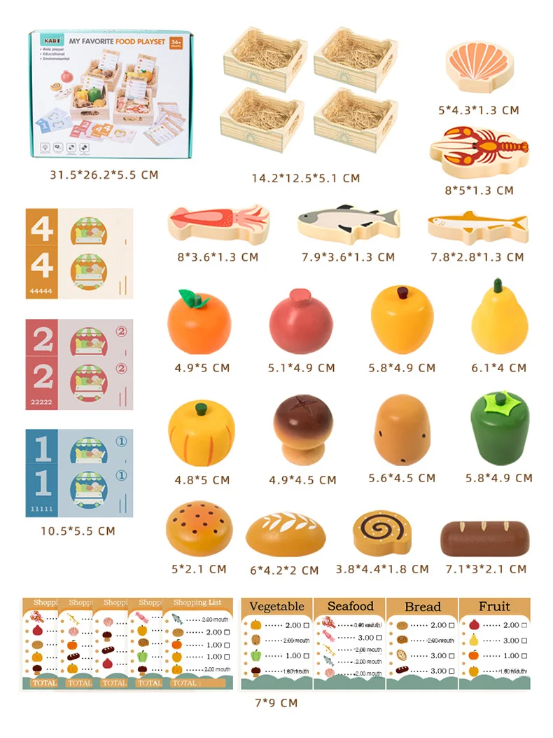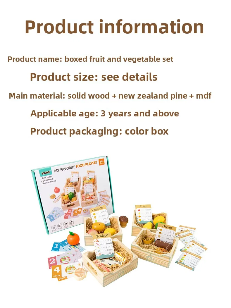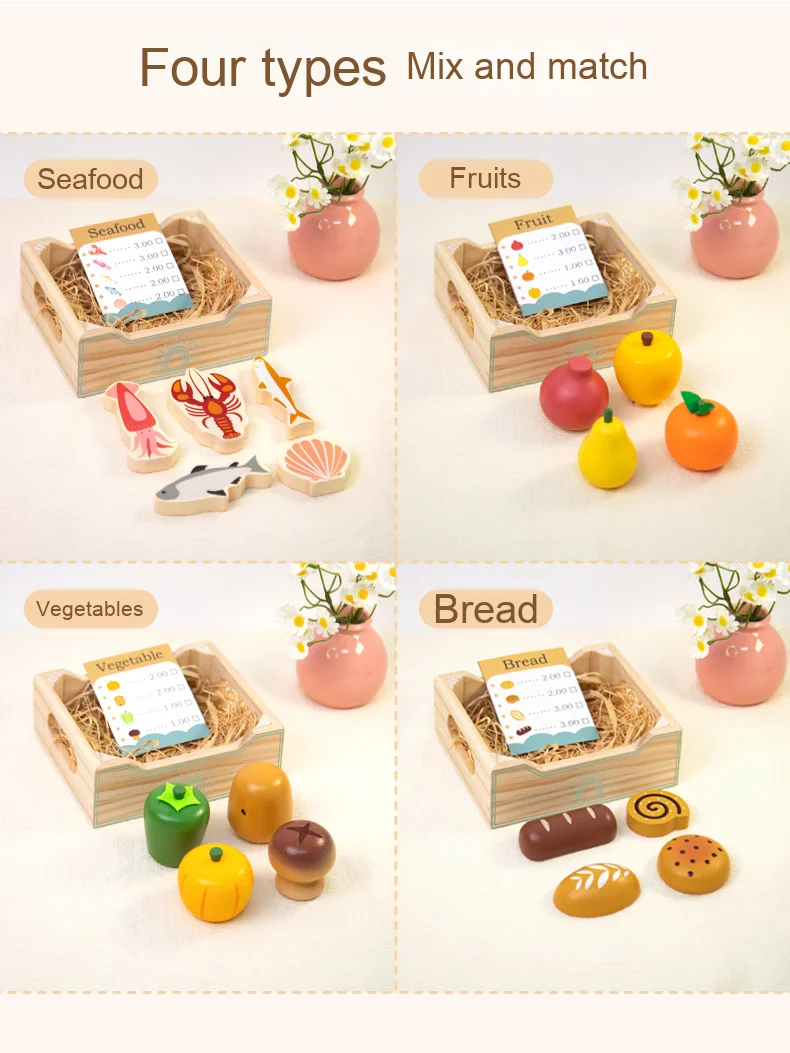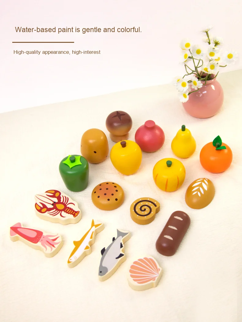Wooden Children’s Play House Simulation Set Early Education Puzzle with Fruit & Vegetable Parent-Kids Interactive Fun Toys