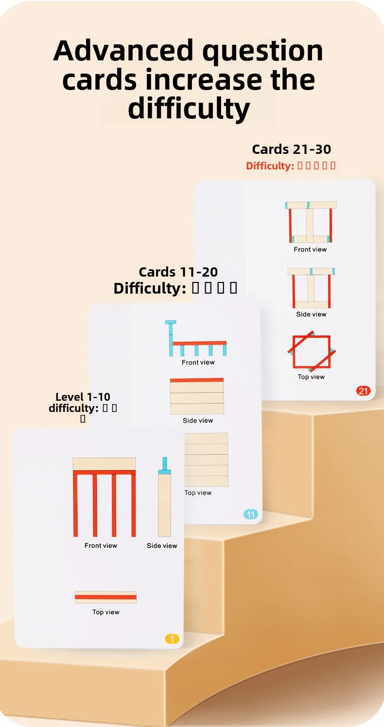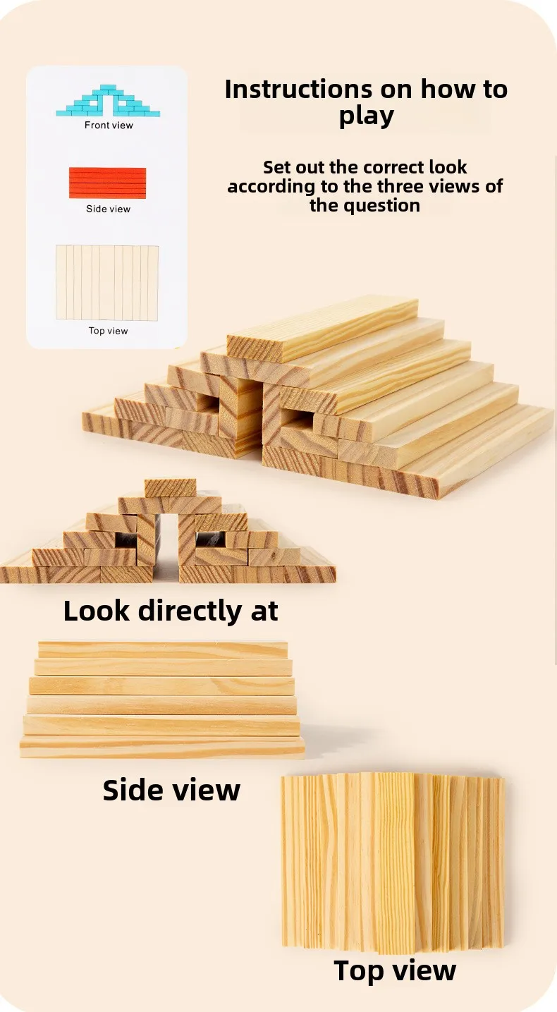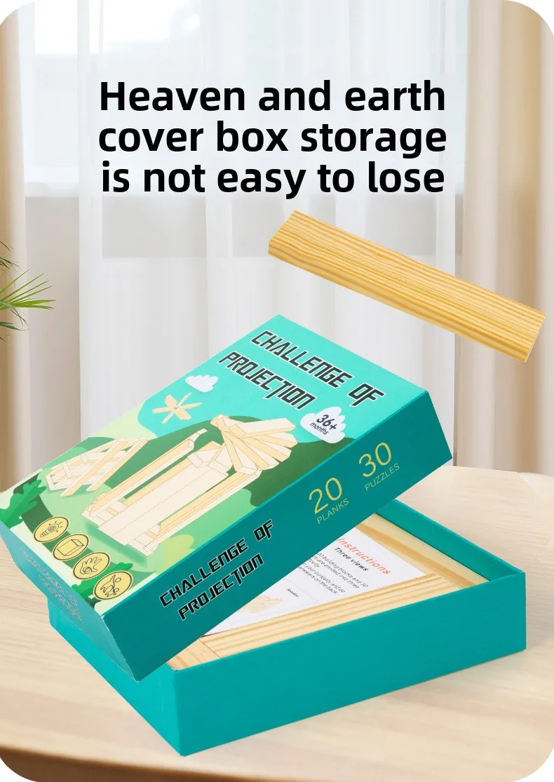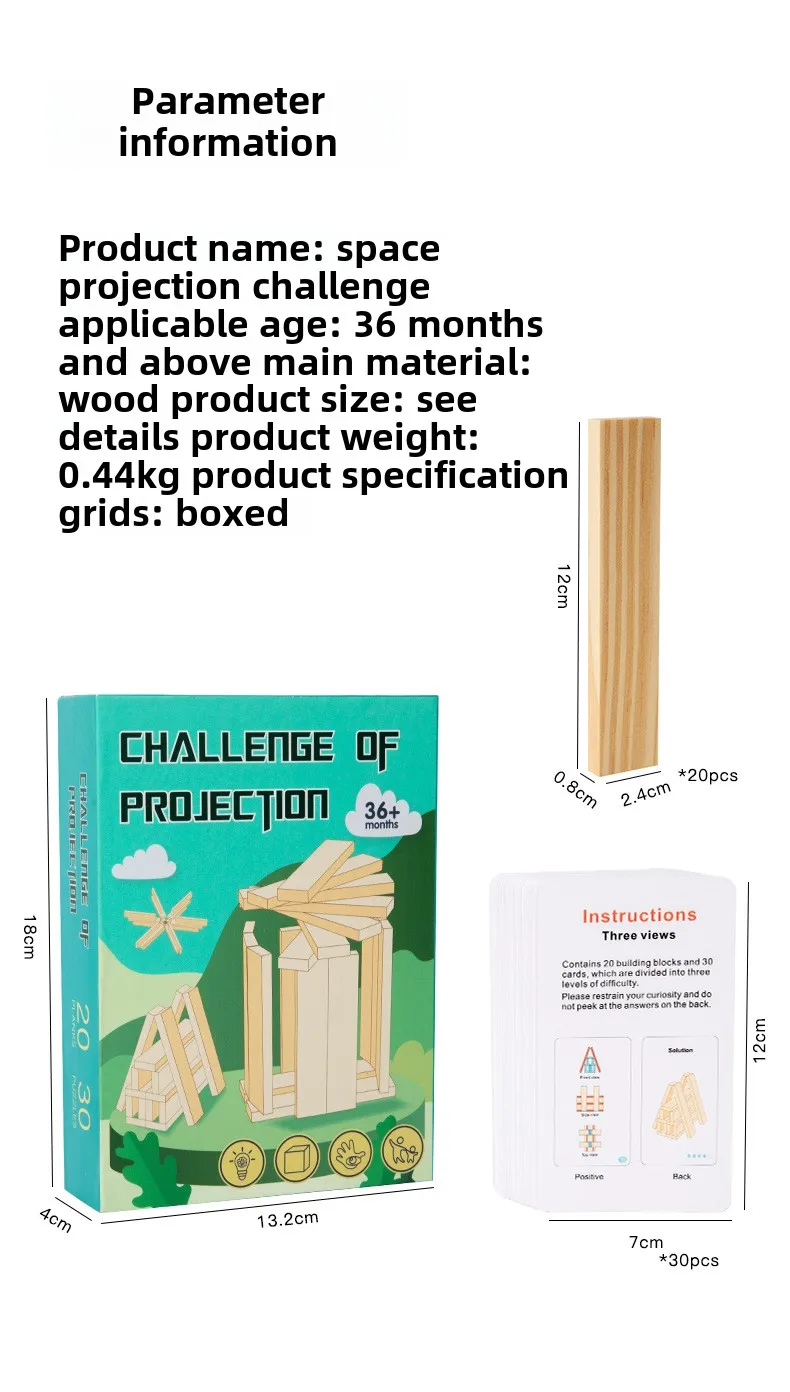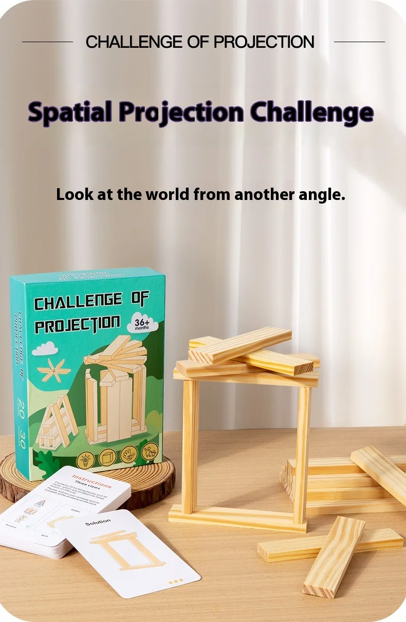 Wooden Early Education Challenge of Projection Toys Building Blocks Cube Puzzle Kids Puzzle Space Projection Challenge Game