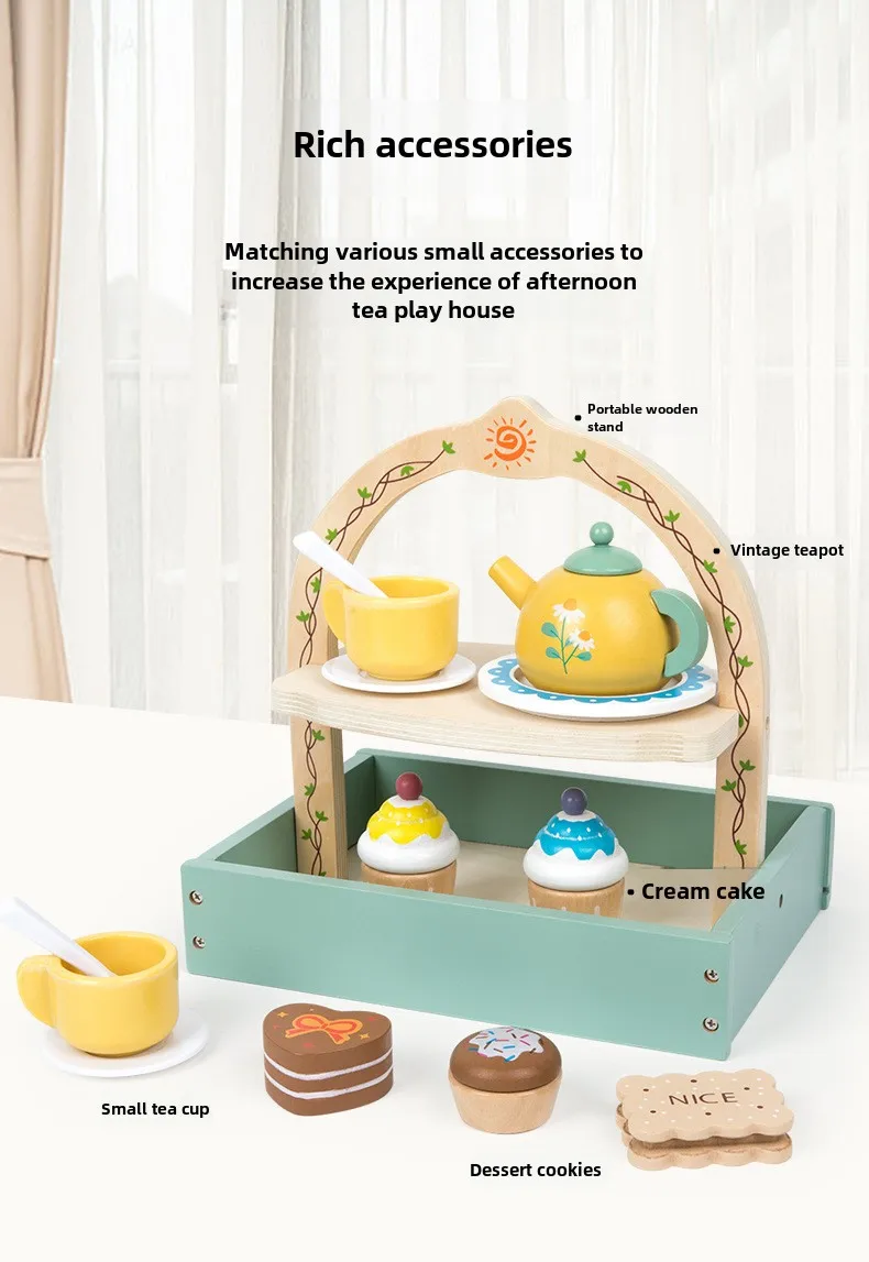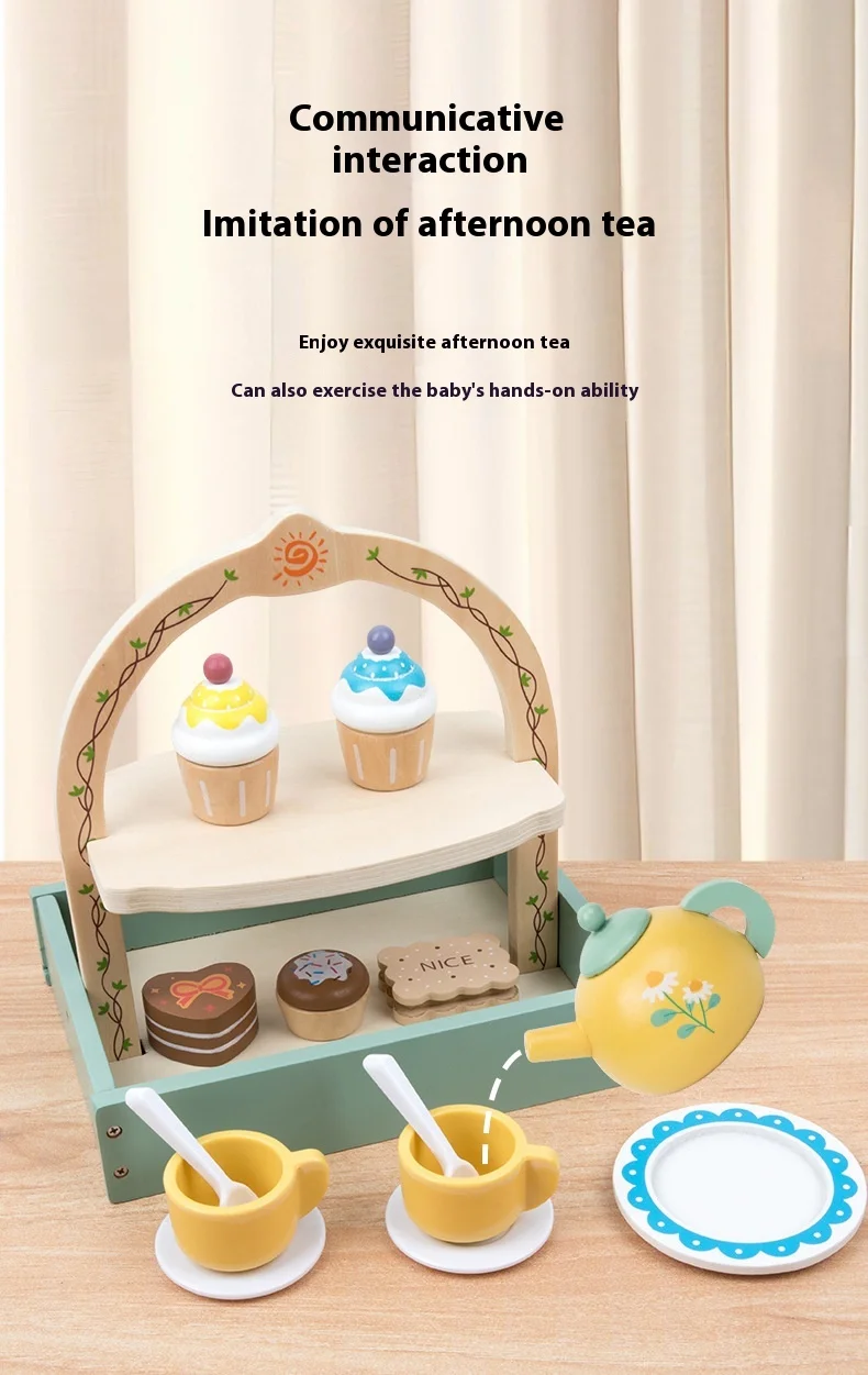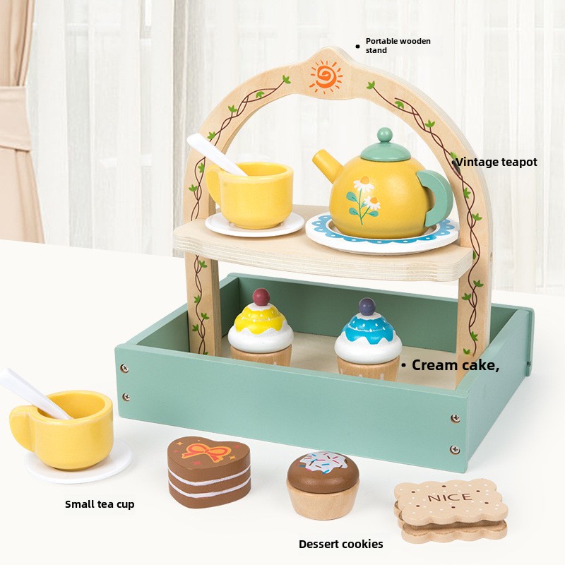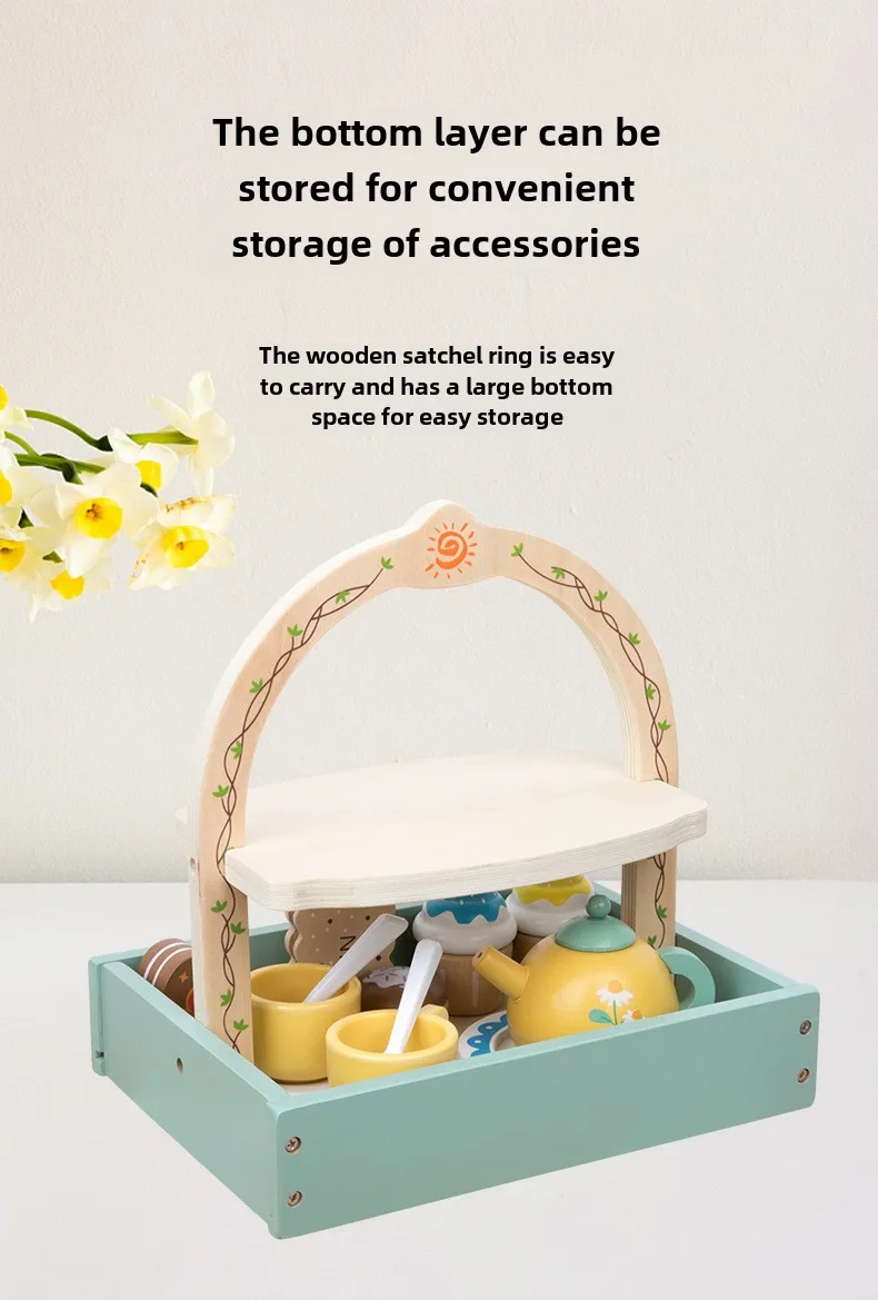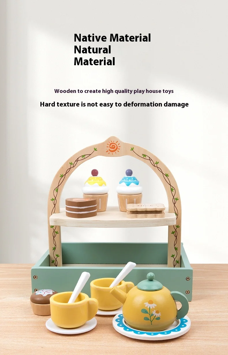 Wooden Early Educational Tea Set Play House Afternoon Dessert Teapot Suit Kitchen Toys for Unisex