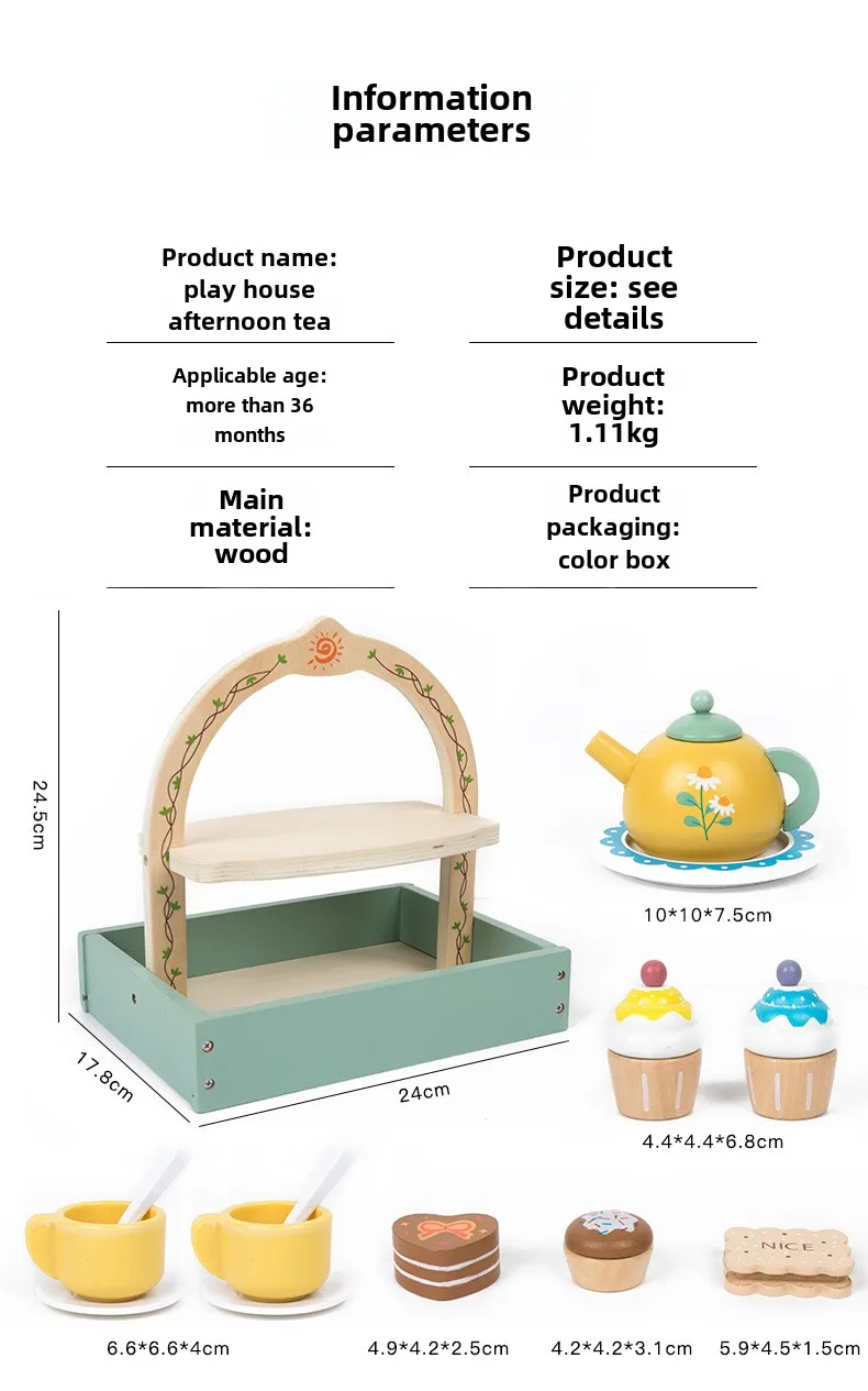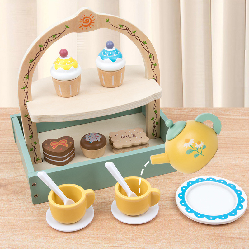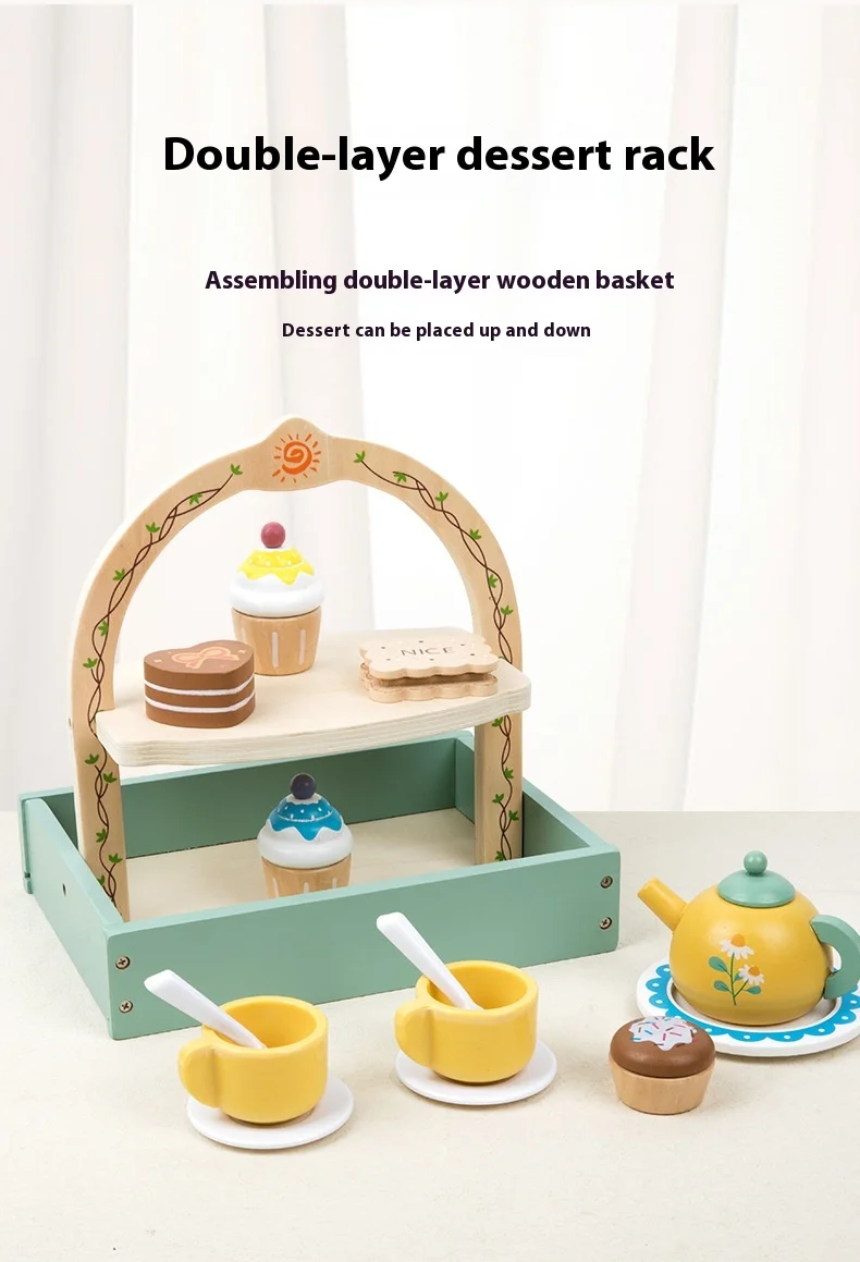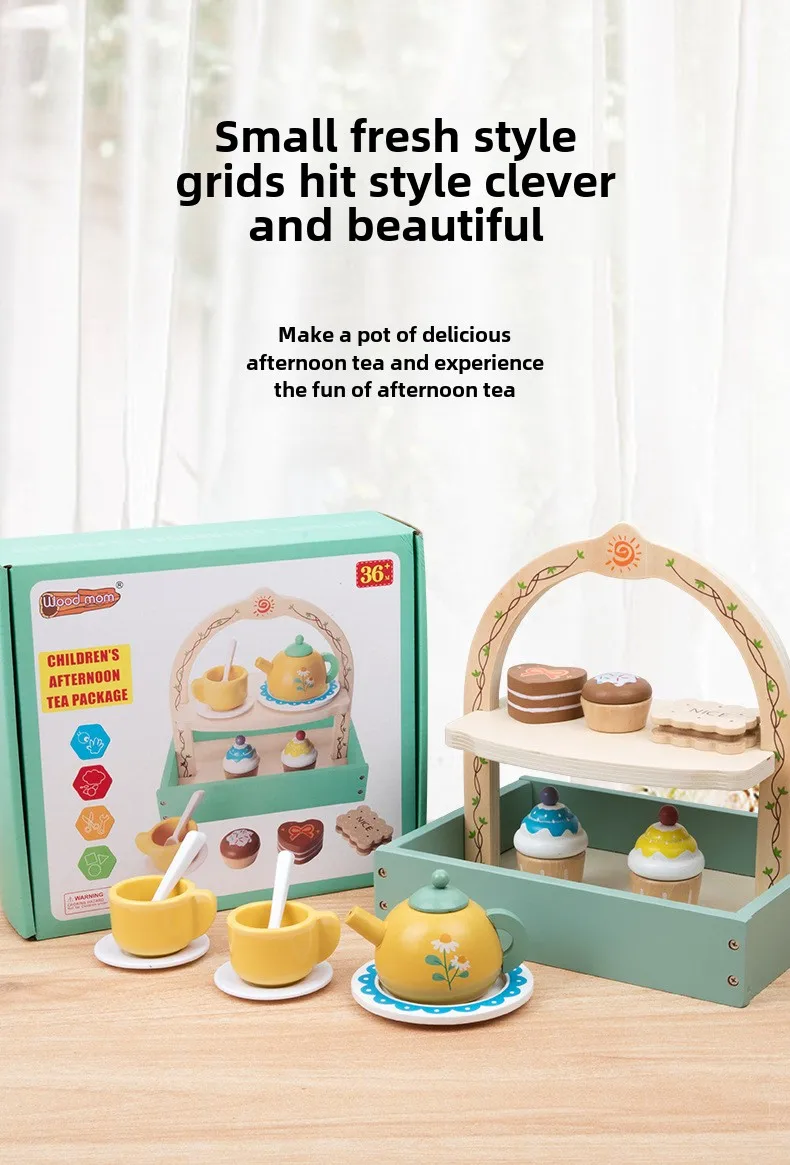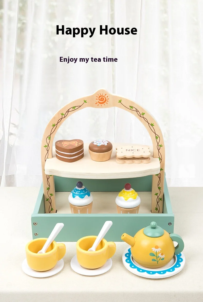 Wooden Early Educational Tea Set Play House Afternoon Dessert Teapot Suit Kitchen Toys for Unisex