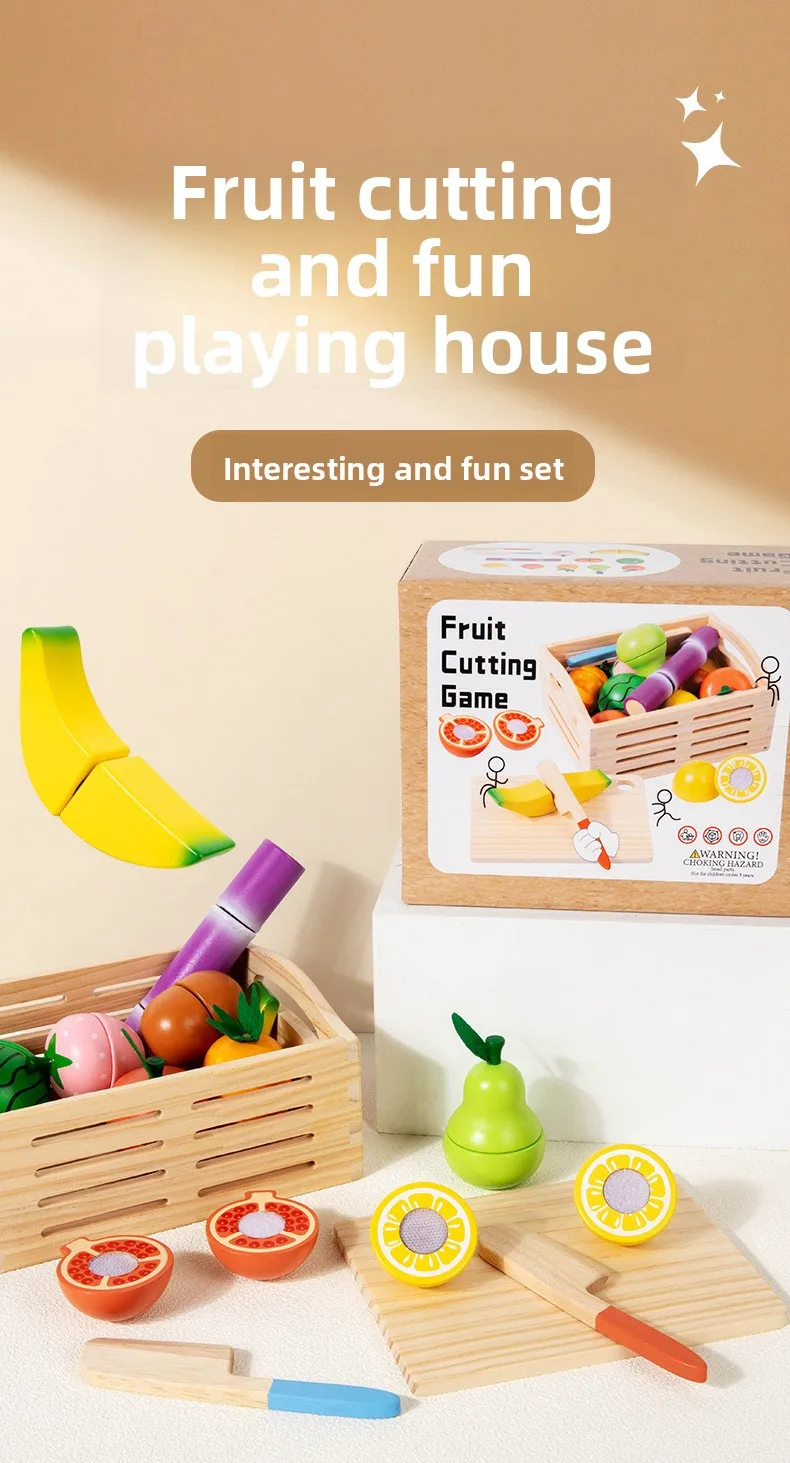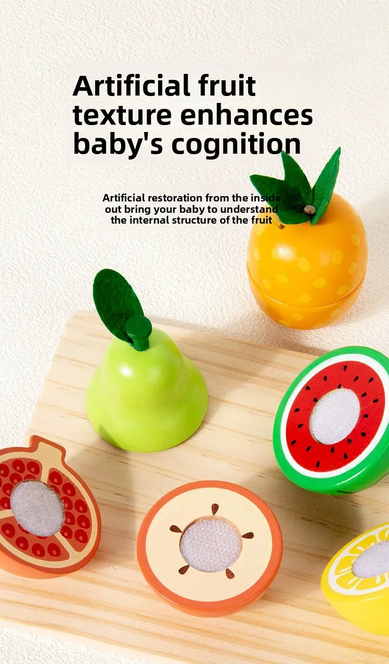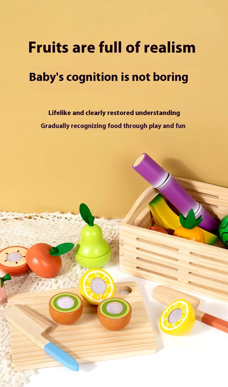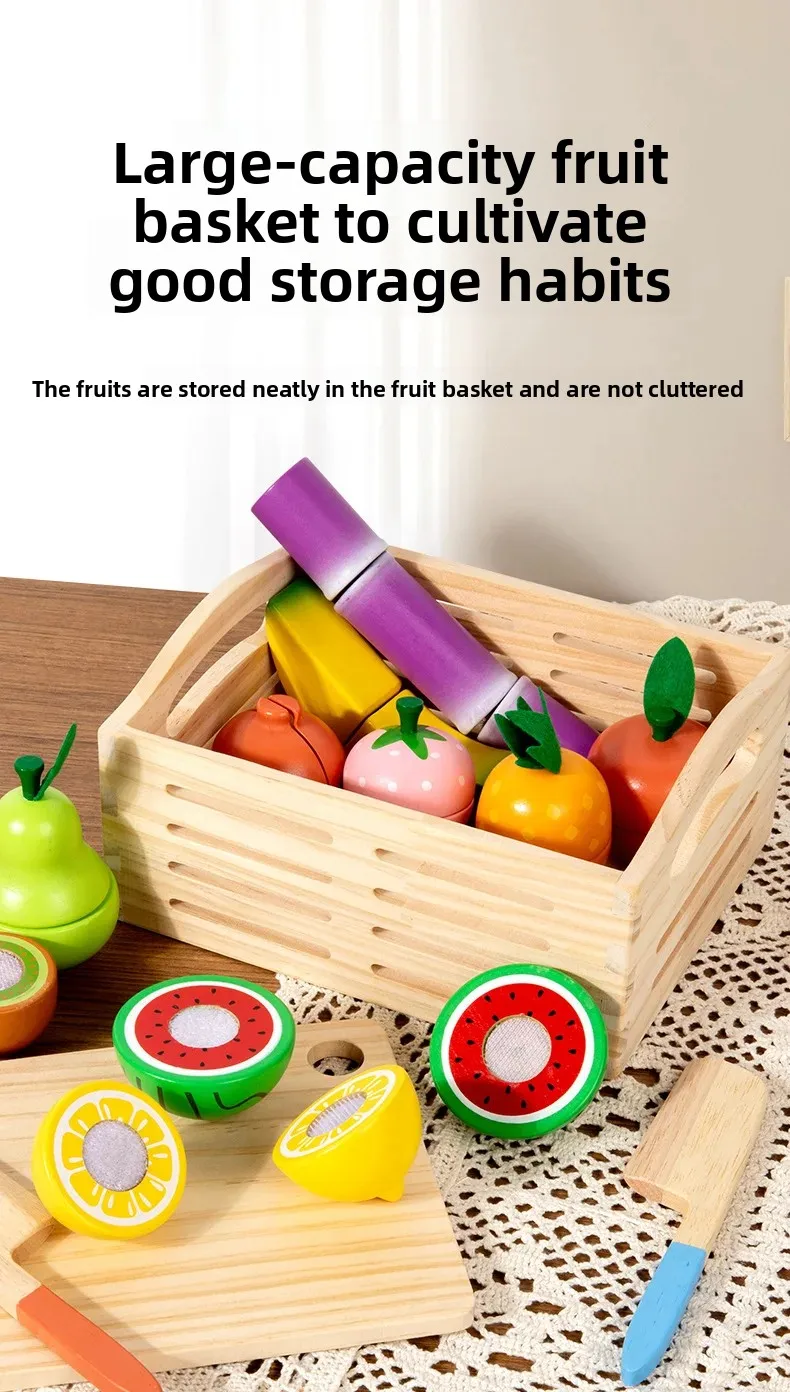 Wooden Intelligence Simulation 14-Piece Fruit Cutting Play Set for Baby Early Education Pretend Play Kitchen Toys
