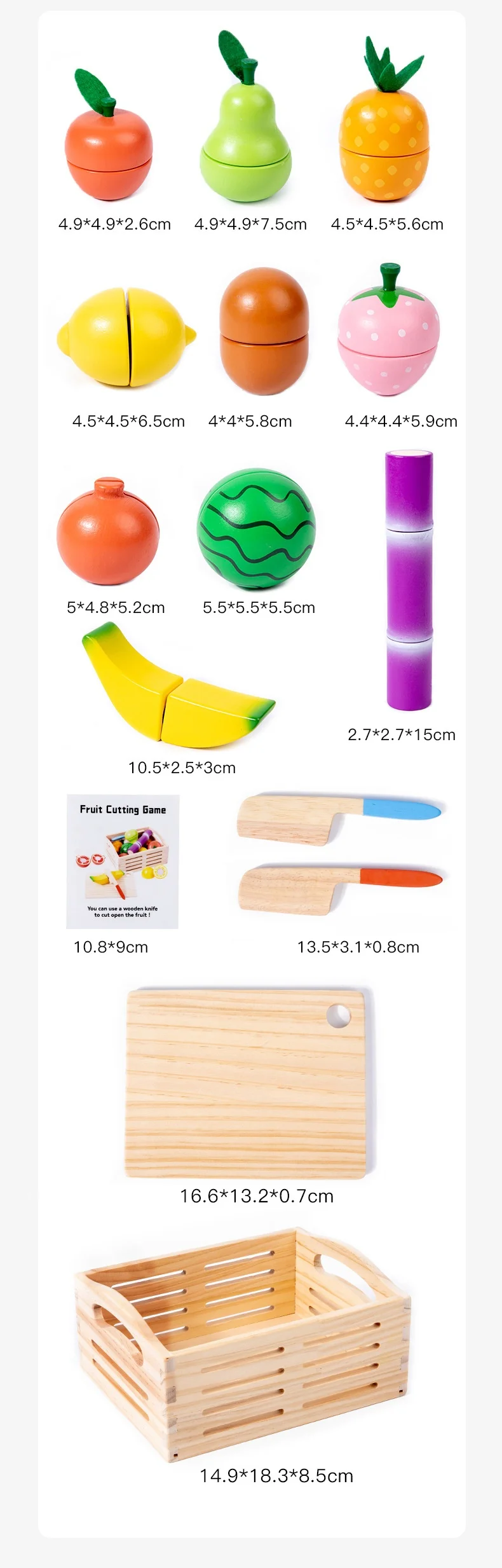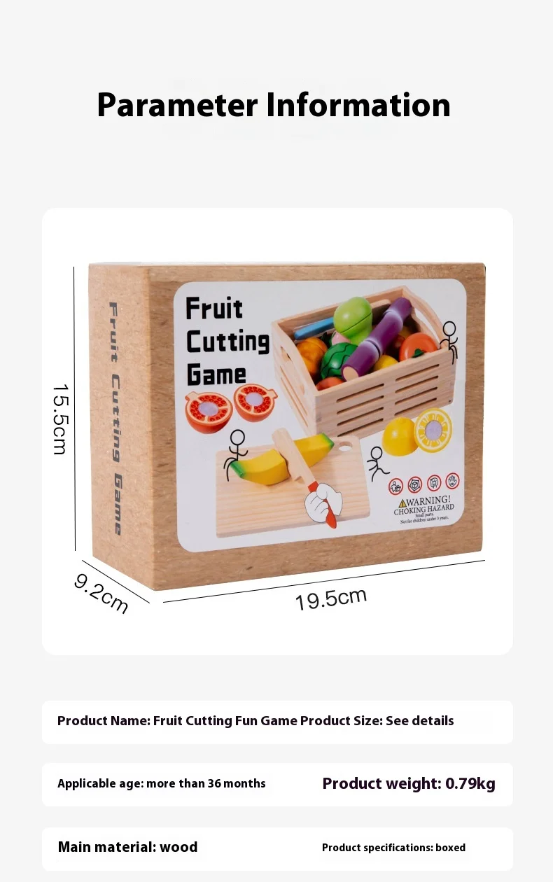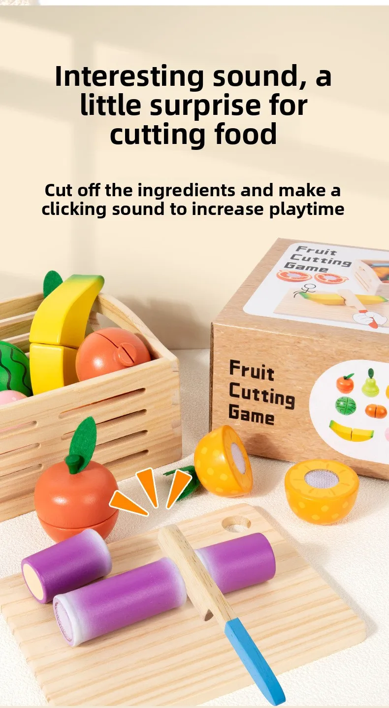Wooden Intelligence Simulation 14-Piece Fruit Cutting Play Set for Baby Early Education Pretend Play Kitchen Toys