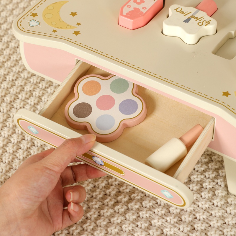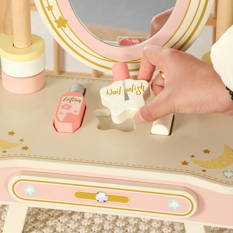 Wooden Kids Beauty Fashion Products Pretend Play Kids Cosmetics Makeup Set Kit Children’s Dressing Table with Mirror for Girl