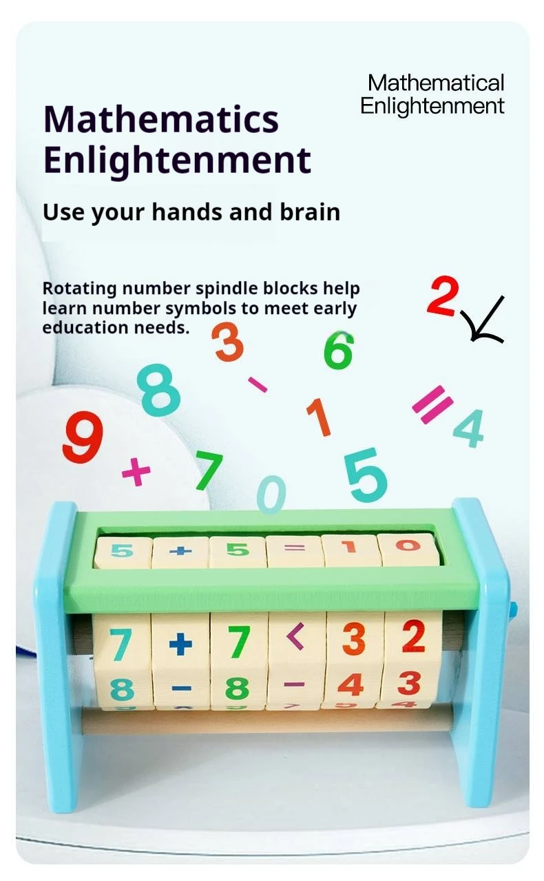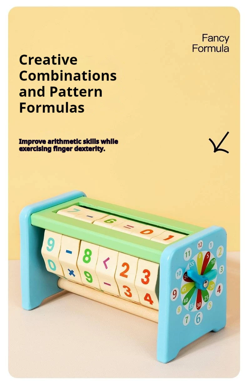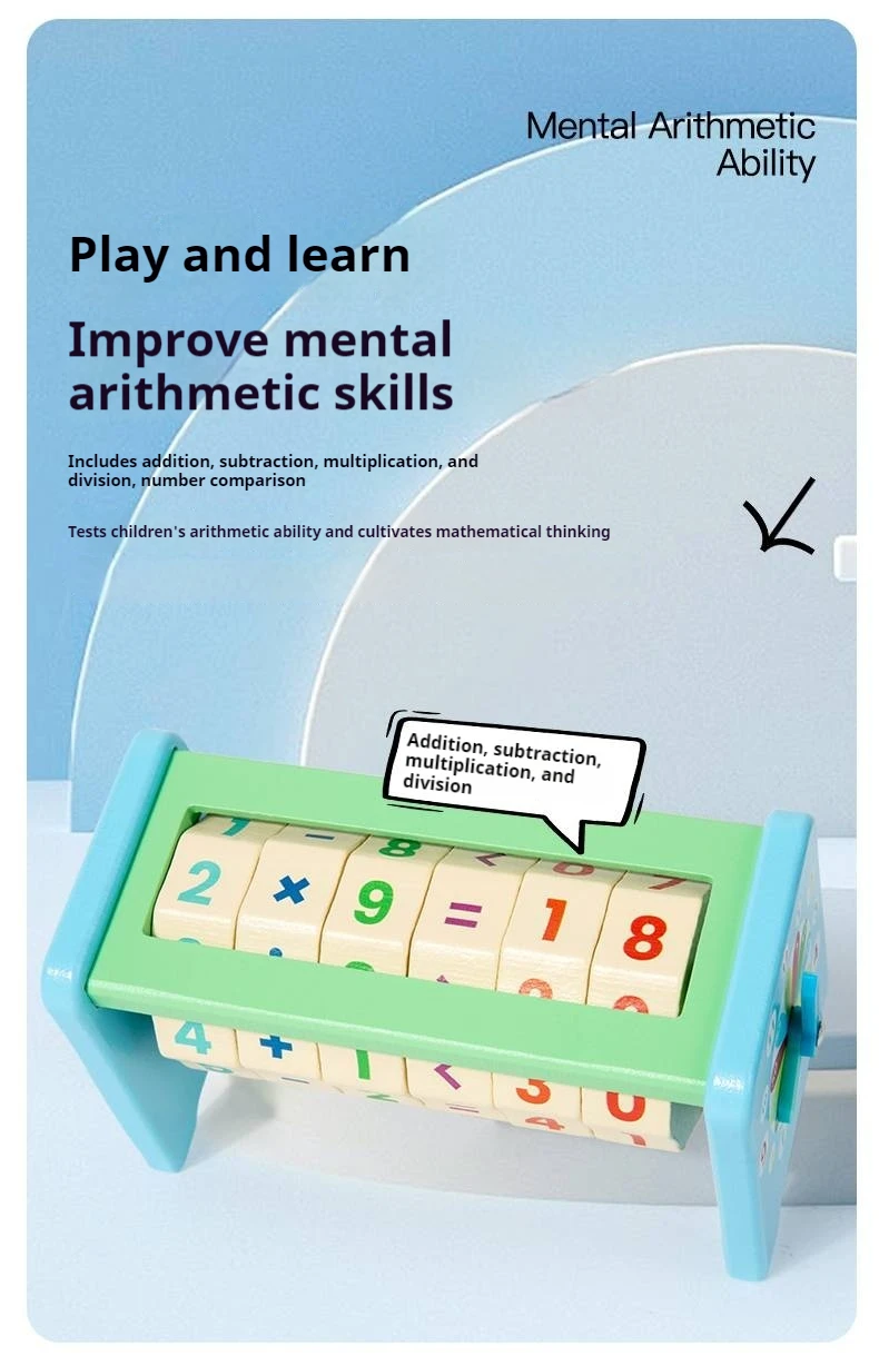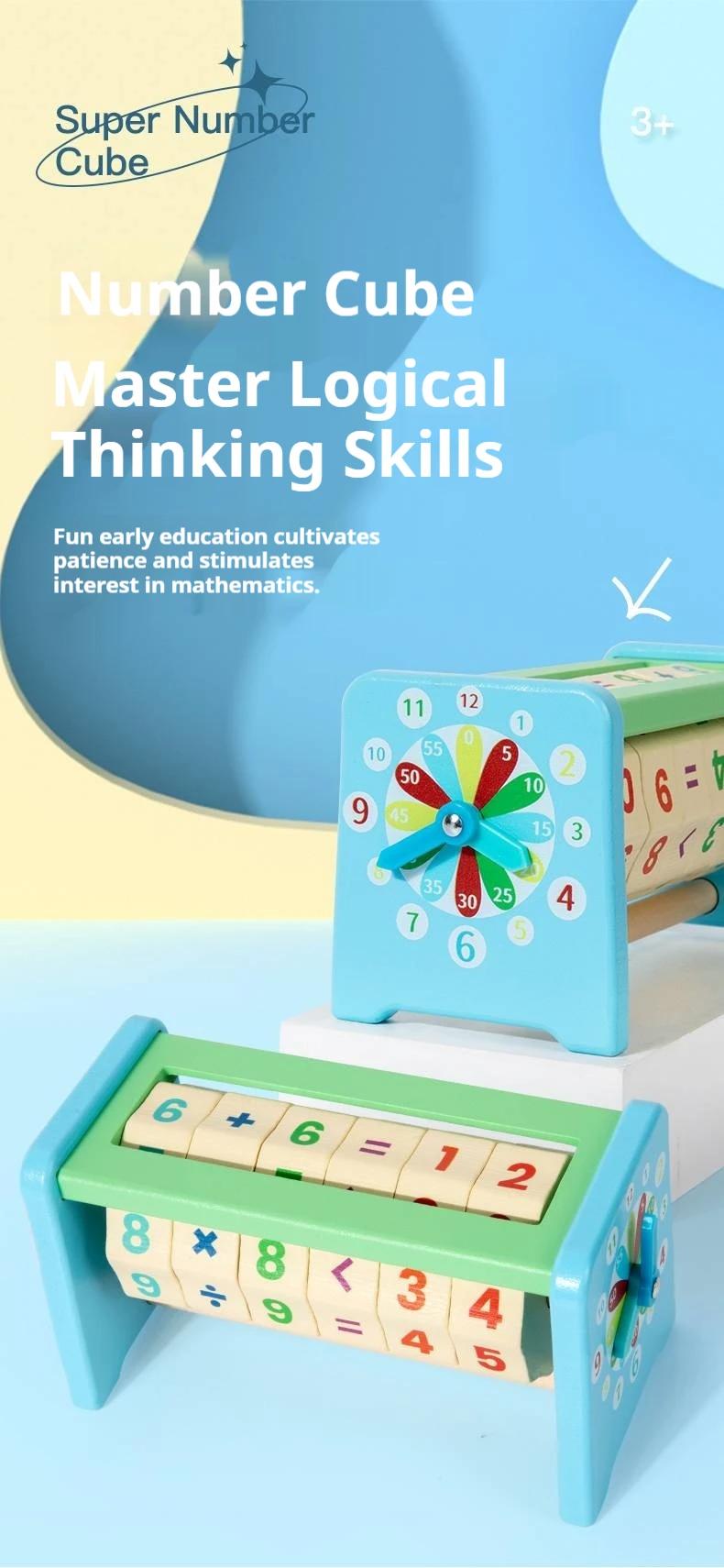 Wooden Math Number Cube Clock Early Education Wooden Math Cube Wooden Math Toys for Brain-Stimulating Logical Addition Division