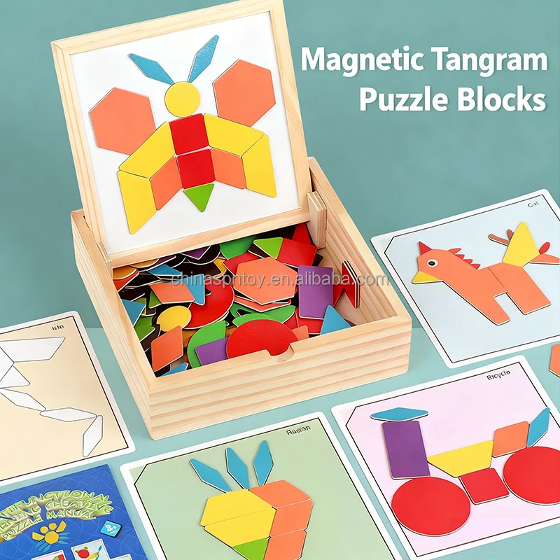 Wooden Montessori Educational DIY Magnetic 3D Geometric Jigsaw Puzzle for 2 to 7 Years Kids Learning Game