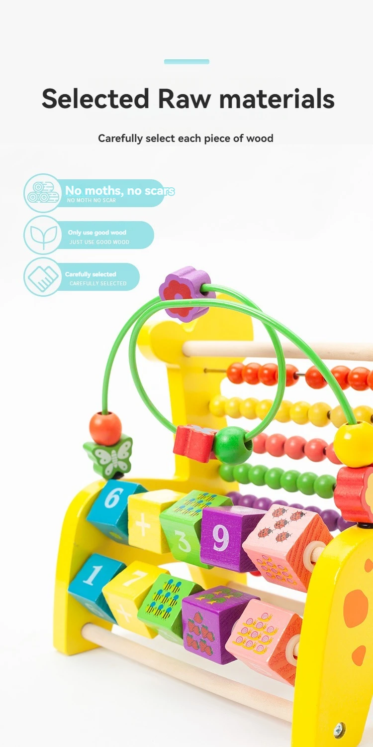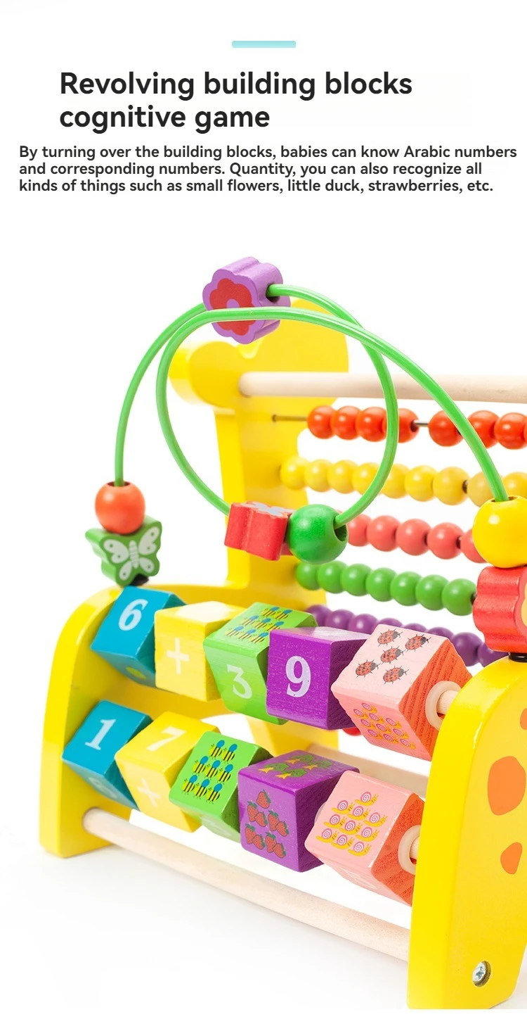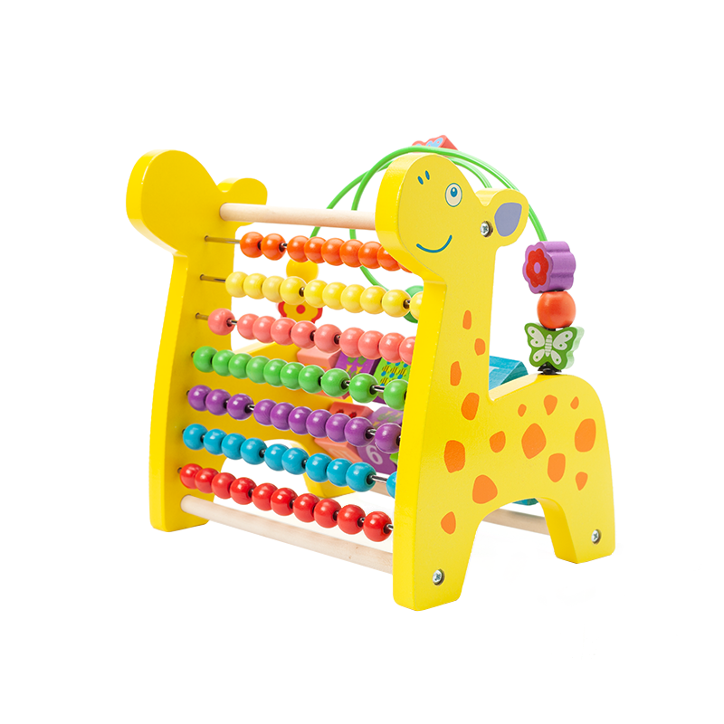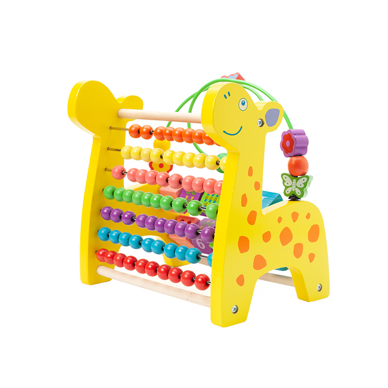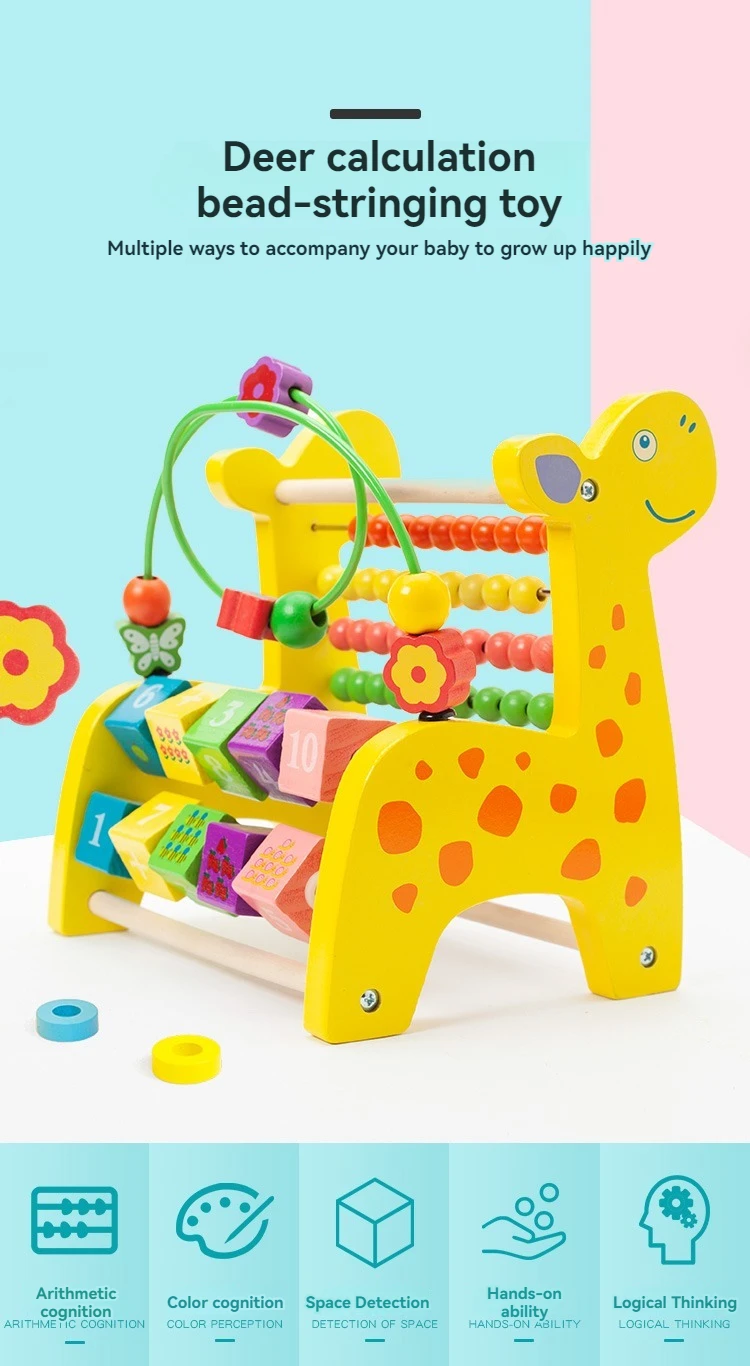 Wooden Multifunctional Deer Beaded Calculation Flip Frame 6 in 1 Montessori Toys for 1 to 3-year-old Boys Girls