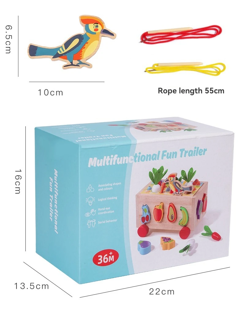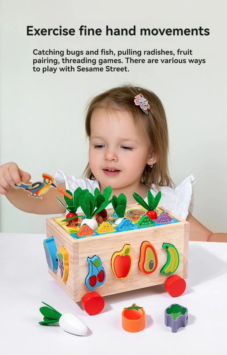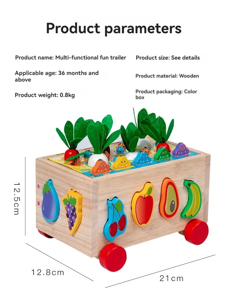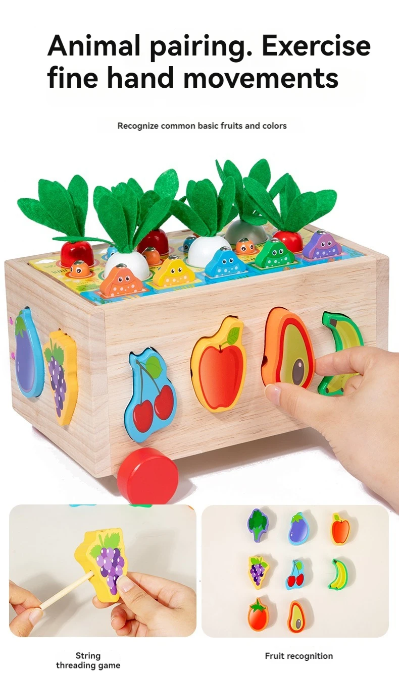 Wooden Pull Car Baby Educational Vegetables Fruits Blocks 7 in 1 Intelligent Car Rope & Column Trailer Educational Toys