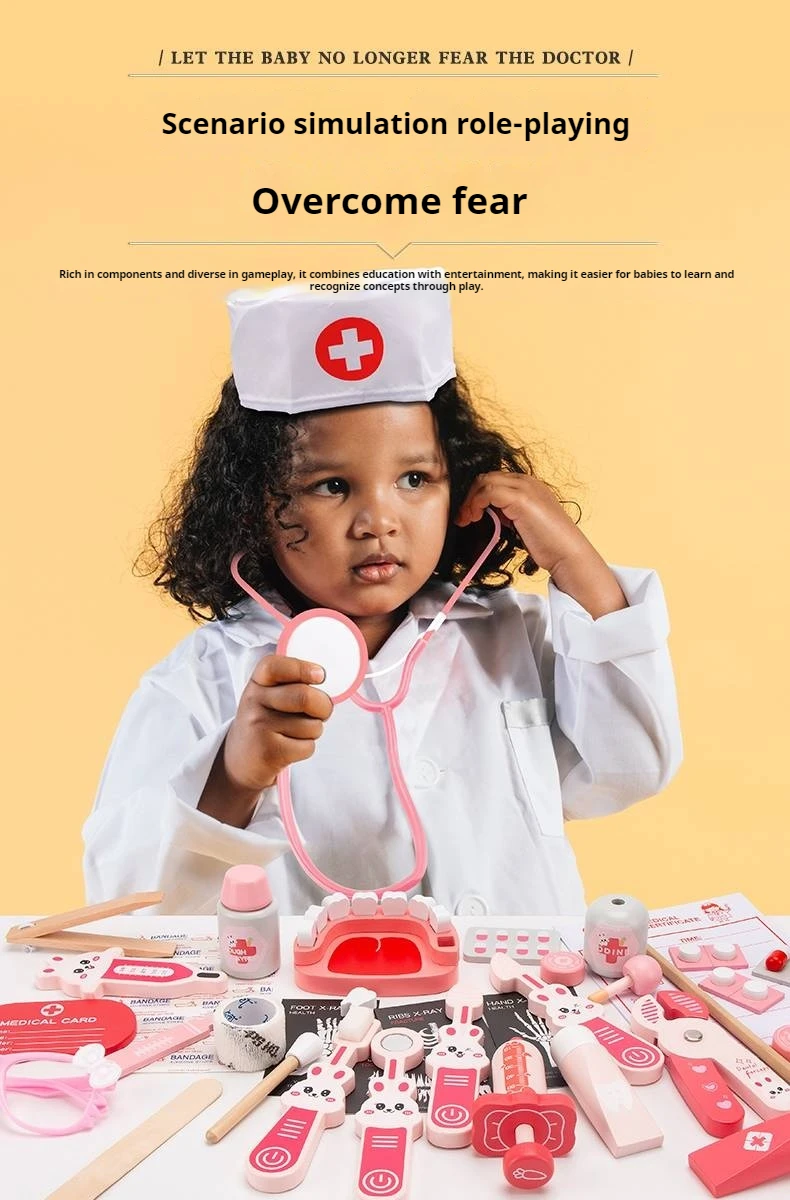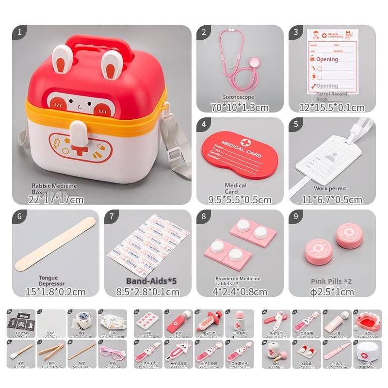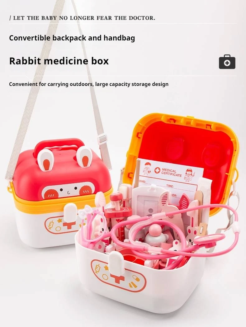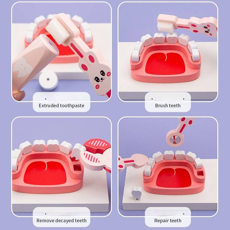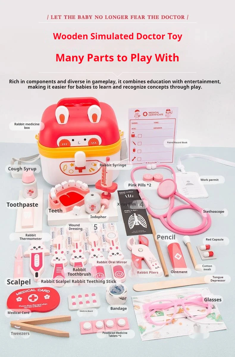 Wooden Simulated Pretend Role Play Medical Doctor Kit Set Toy Tooth Brushing Dental Accessories Rabbit Doctor Box Toys for Kids