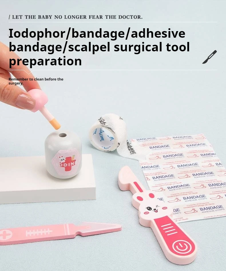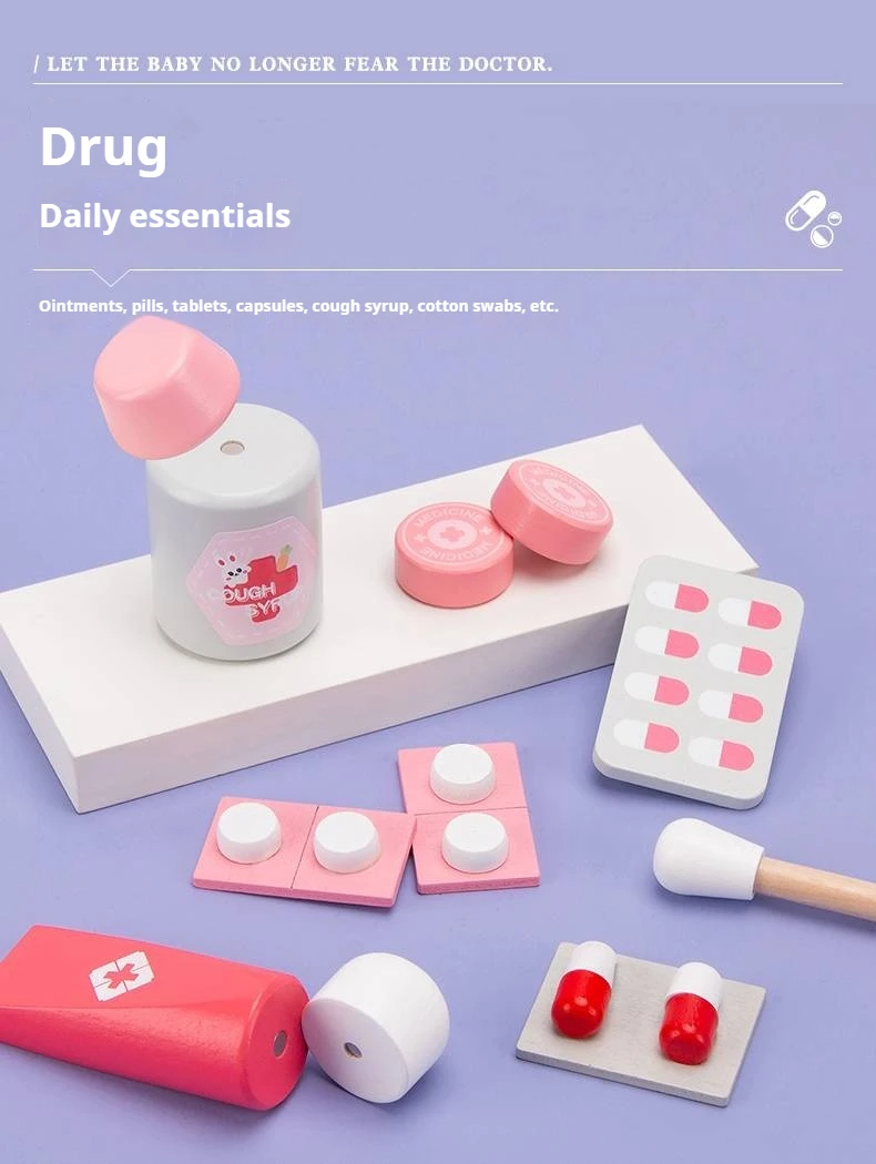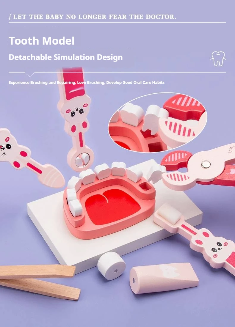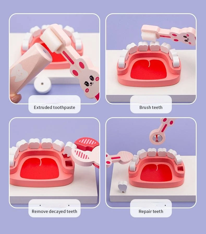 Wooden Simulated Pretend Role Play Medical Doctor Kit Set Toy Tooth Brushing Dental Accessories Rabbit Doctor Box Toys for Kids