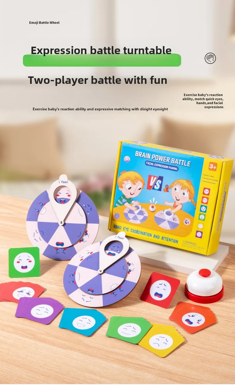 Wooden Turntable Battle Game Set Interactive Family Expression Kids Educational Toy Face-Changing Turntable Wooden Toys